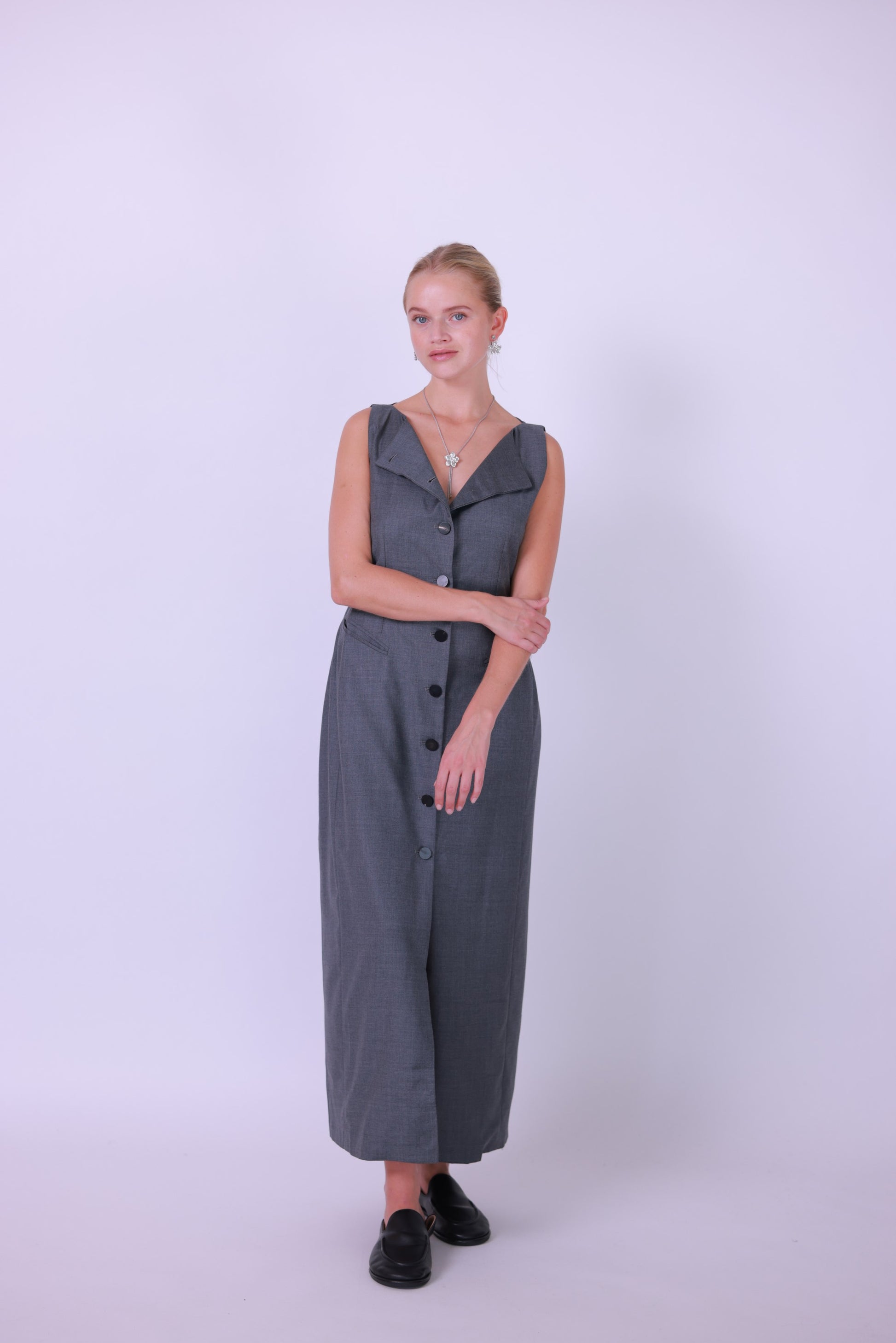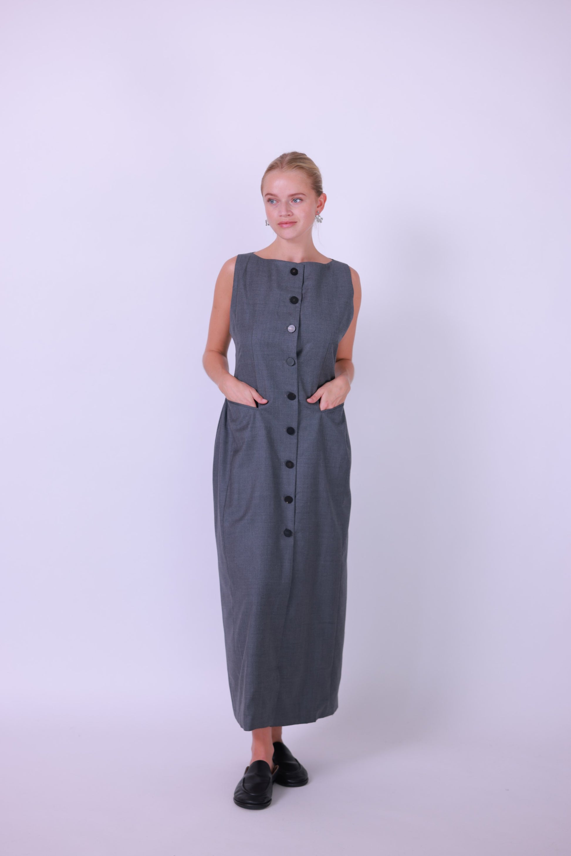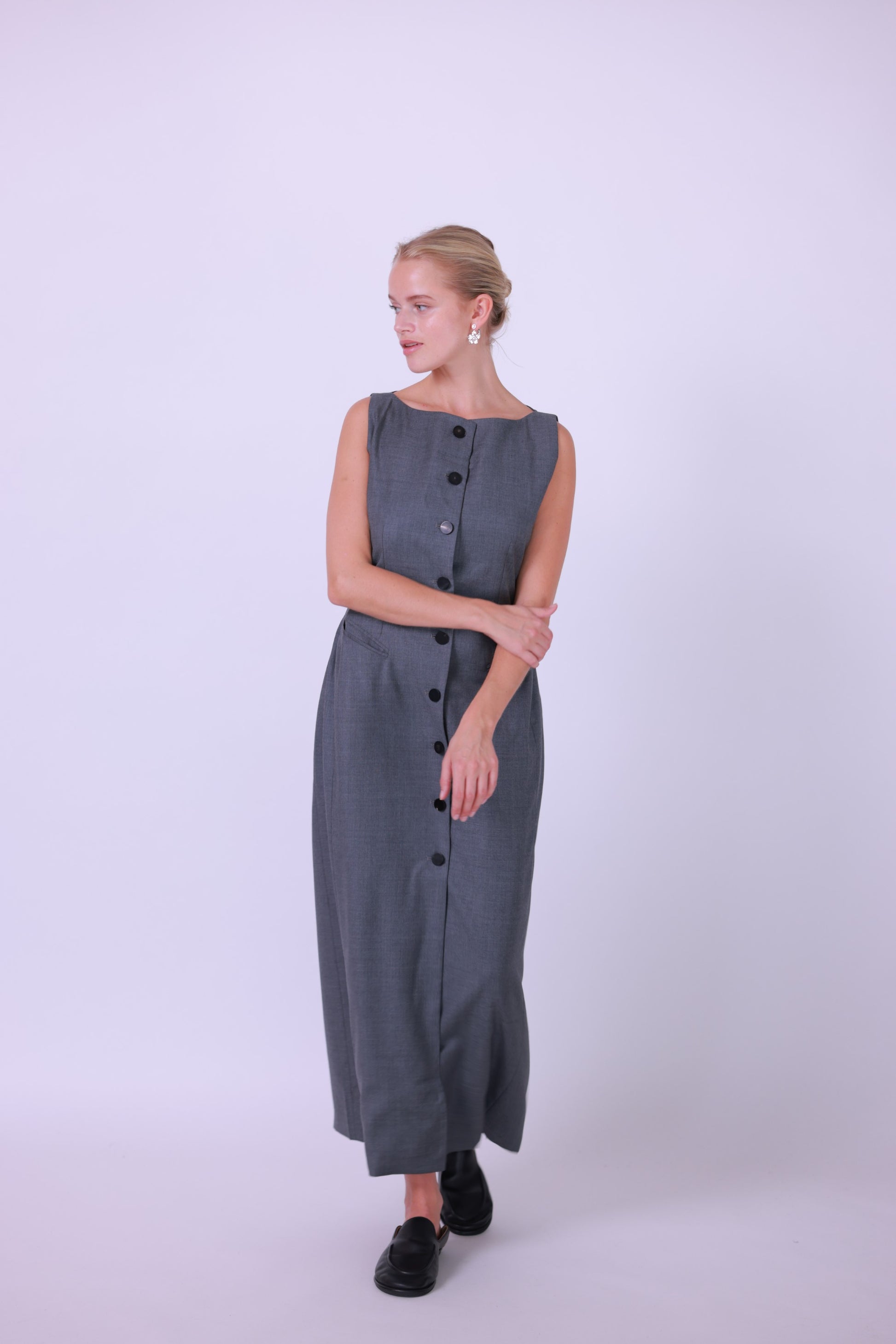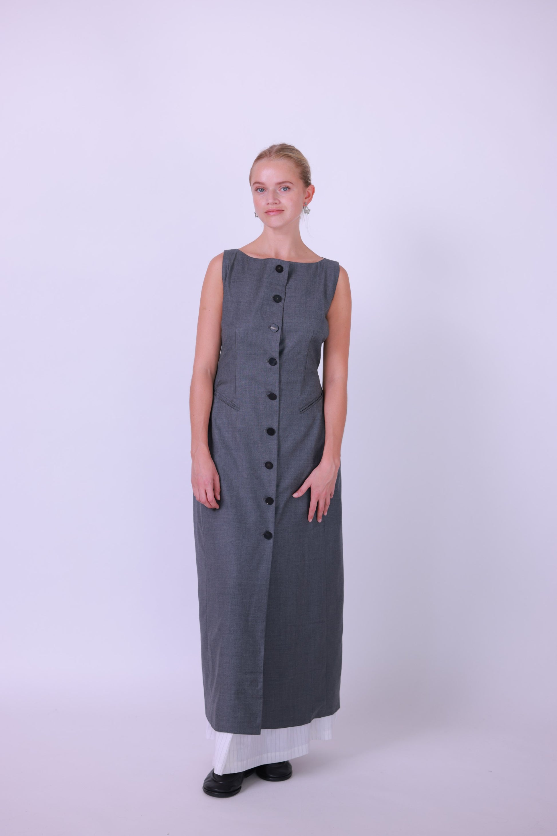Long dress wool gray/black